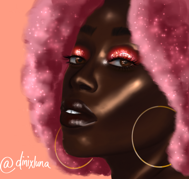 #spring #afro #blackgirl #digitalpainting #flowers #goldearrings #photoshoppainting #pinkflowers #pinkhair #portraitbeauty #stylized #wip #afrohair #wipworkinprogress #studypainting #afrohairstyle #blackgirlart
