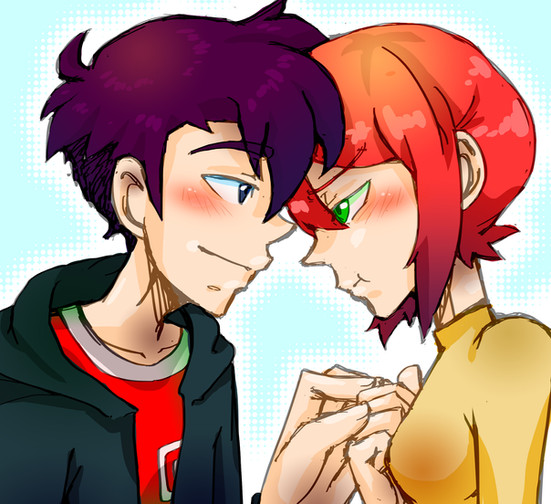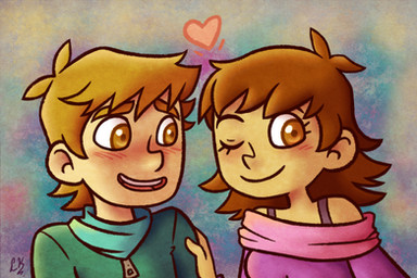 You know, looking at it again, I think part of what makes this work is your body language, did you even do this intentionally? Their body language just matches their gender so well and kinda compares the differences with them side by side like that. Jason is nice and straight, kinda leaning ever so slightly to one side which if he's walking I'd imagine he'd be kinda 'man-hobbling' and he gives the impression of a strong confident boy. Meanwhile Violet, on top of being naturally smaller, shows this body-language that's very cute and vulnerable. The way she's leaning towards him, is very close to him, her head slightly tilted and looking into his eyes almost admirably not necessarily in a 'love' way but in a 'he's a boy' way.. if that makes any kind of sense. They look like they have a very close friendship boarderlining on something 'more' but they're either happy just being friends or are maybe afraid of ruining their friendship if a relationship didn't work out.