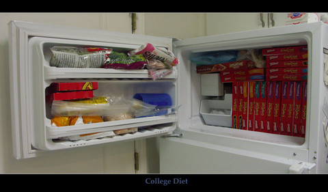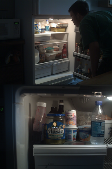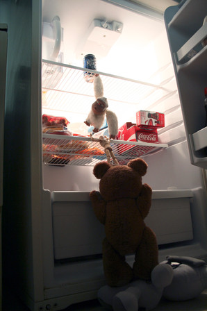 When I used to shoot film and when I was single the fridge would have mostly bricks of film and something like this.....