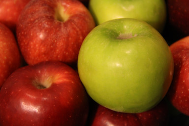 I'll be having applesauce with dinner.UPDATE: Because of the critiques I've been getting for (and thank you all for it), I've made the red apple noticeably more red and lightened the background.