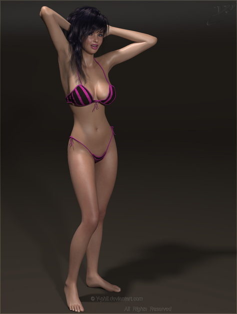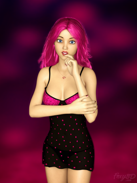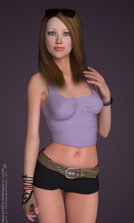 Beautiful girl, perfect little body, nice outfit. Great lighting, hair, and textures!