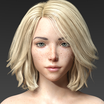 Yes, another face, already seen. Lately, I've been testing different settings for the human skin, and I love the result: it's perfect for me because it's not perfect, not perfectly polished, almost plastic and most of the time unrealAnd the hair... Kozaburo's excellent Short Hair Evolution, coming from long time ago when it comes to computers: 2004