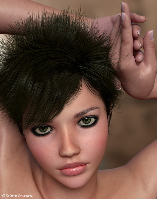 Here is another test. I wanted to change the settings on the eyes and the lips.I'm not sure to keep this portrait with that hair...