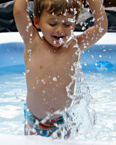 oh he's a fish.. LOVES the water! we go anywhere near a puddle and he wants to take his clothes off and swim in it...