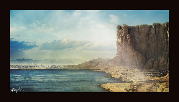 The only other thing to say, is that I don't particularly like the obvious 'fading' between the different images you've used. The way the water fades into the shore, the way the monument fades at it's bottom... it looks very... half-arsed, I guess. I mean, come on! Try actually cutting around the different shapes, then blending them in or something to look natural... the whole fading thing doesn't look right