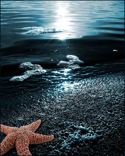In order to grab the water droplets with that degree of accuracy did you have a very plain blue sky background on the original wave photo? Also the boat - in either of the original pictures or separate image?