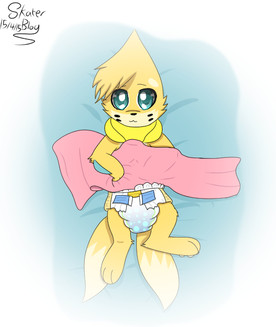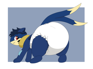 Commission forRoey the buizel crawling on his tummy showing off his""Bequiem Luxury Frilles" diapers and shoes x3