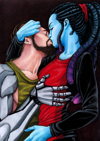 Tali in her younger years (Roughly 15) And her father Rael'Zorah... or at least my idea of the two.As much as a hard-ass as they made him see, I could see him having a HUGE soft spot for his Daughter.