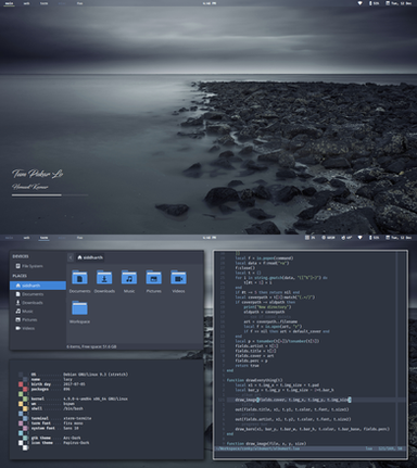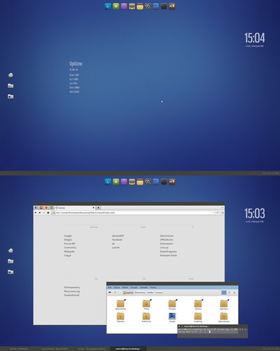 I have take a new Shot of my way in this Year from my Desk.Tools a working for me: Terminator, MOC (Musik on Console), Midnight Commander, HTop and Covergloobus. I Think this is for a little Days OK for me. I have a Reallife and i Think my PC must Work for me and not reversed. Conky is for a Moment „Out of Order".