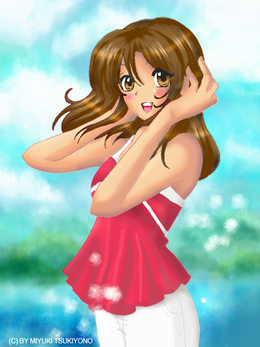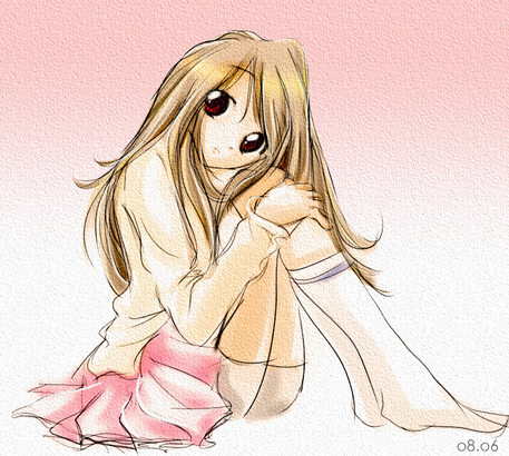 It's so innocent and lovely. I like the insecure look on her face and the light colours ^^