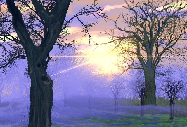 #3d #death #digital #digitalart #fantasy #fog #nature #sky #sun #trees #vue #wallpaper #nystical #landscape