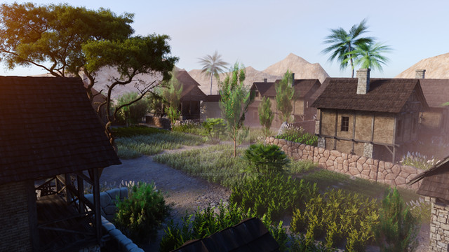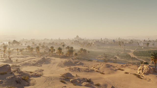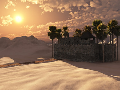 #3d #desert #landscape #palms #persia #sun #sunrise #sunset #vue #cottage #digitalart #oasis #wallpaper