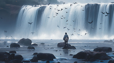 ⭕️ Matte Painting🔹 Tourist Who Enjoys the Beauty of Waterfalls