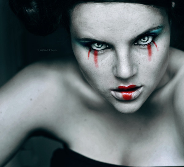 Wow. I love the contrast between her hair and her skin tone. And the blood on her hand is a great touch!