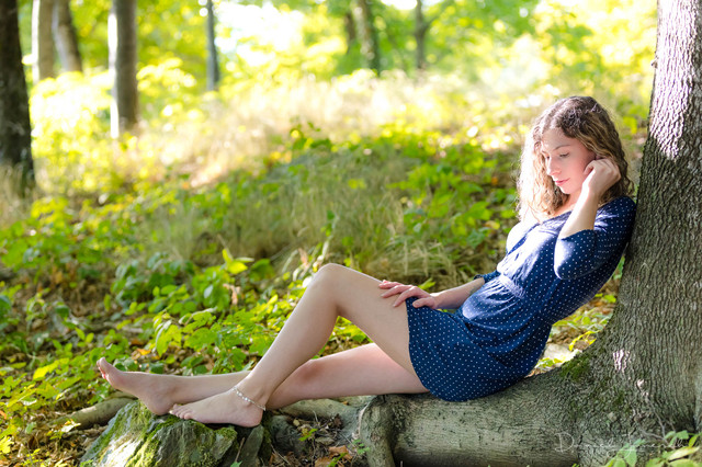 I really love this photo. The expression, color and contrast are great. I especially love the one bright blue fingernail that's visible. It creates a great focus point with the opposing colors.