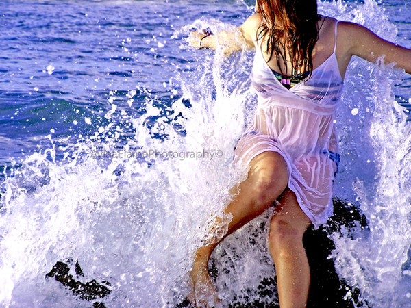I Wish I could Critique, but I don't have the cash. So! I'll tell you what I love about this! First off, I don't see a lot of editing, which makes this picture even better! I really enjoy the composition, the elements, the rocks the water and the model are interacting in the photo, catching action.