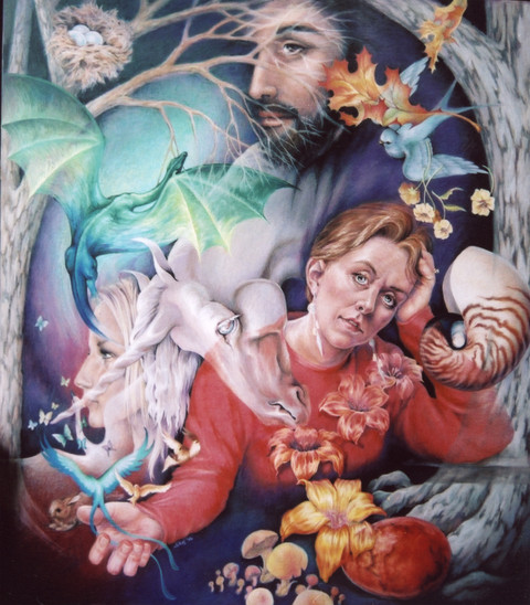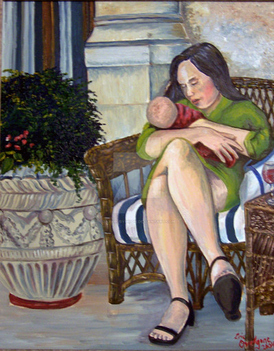 I love this picture, it's so vivid. I don't often see the subject of breast feeding so beautifully explored as this. It has a lot happening in it yet the busyness is offset by the calm setting; it's almost as if she's thinking about the long journey she took to finally get to this point and there's only more to come. The joys of motherhood, bringing new life into this world, there's no feeling quite like it and truly an honour that you expressed in your creative painting.