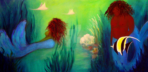 Grazie Nathalie, è un lavoro di circa dieci anni fa, avevo in mente di scrivere un racconto tra il fantasy, con creature fantastiche tra cui anche le sirene e i romanzi di Jules Verne ed è venuto fuori questo lavoro, in verità per i pesci mi sono ispirato, colori a parte, a dei pesci reali che vivono nelle profondità dei mari, sono molto mostruosi e curiosi soprattutto quello con la "lampadina"...