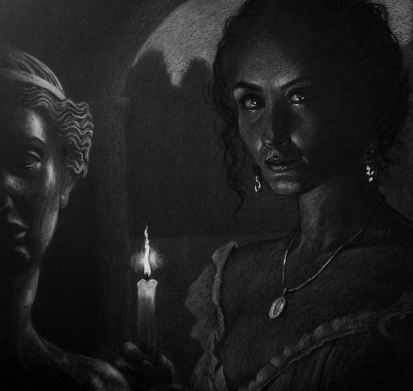 Noir: "Trapped"drawing with pencil b6 on paper cm29x29, 2020