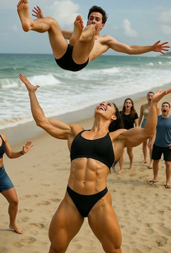 dani009900 - A man and a bikini woman Beach wrestling face off [🤖]