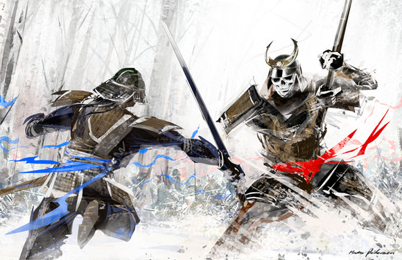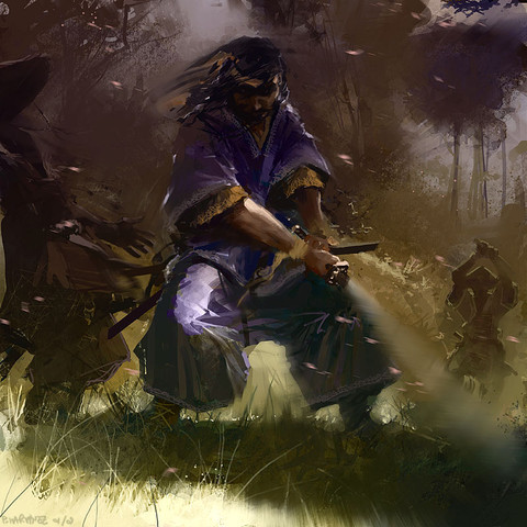 You're pretty damned good at your lighting, you know that? That's what makes your pictures look so striking and dramatic. I almost feel as if I can step into this painting (although I think I wouldn't be welcomed by the samurai!)