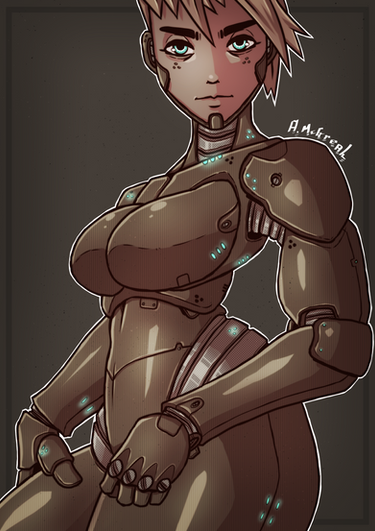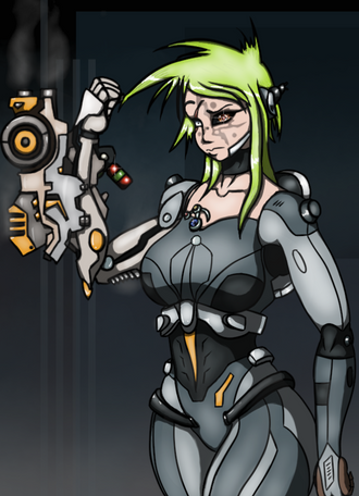 She kinda looks like a cyborg Samus Aran in this picture.
