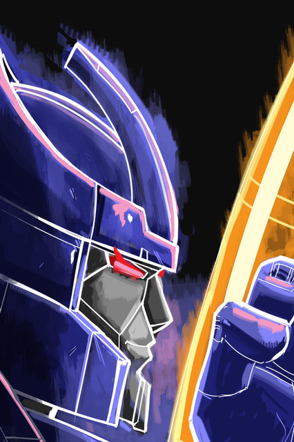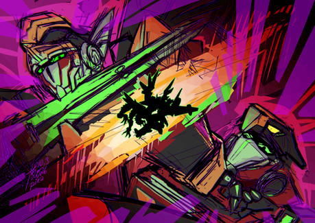 Oooo! Love the contrast between the lack of detail in their limbs and lots in their faces/helms, it really conveys a sense of power and motion. The sparks are pretty too!