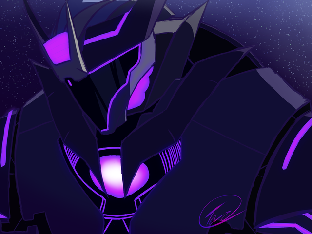 I really do like the background, because it clearly has the feeling of being a large screen, and if the viewer was mistaken for what it was in the first place- you've got panels below to indicate that it really is a screen. Adding noise and giving it a motion blur really helps to bring that neat effect and feel! And then the light rendering on Soundwave is just so beautifulll. *-*