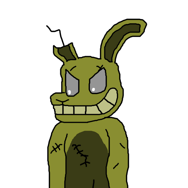 This is Springtrap from Five Night's at Freddy's 3, but is this looks like design cross with my Bonnie design or something not, yet is it my version of him? In my AU version, He had split personal when he had one is gererous, angry, nerdy and being creepy and other is evil, psycho and super anger he is purple man who goes inside him and dies, and also plays banjo. He is being trick into follow Balloon Boy's voice by nightguard. Also he is friend of Golden Freddy or Golden Bonnie in Fredbear's Family Diner.Don't hate comments, Pikachu!