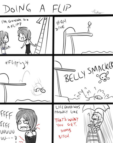 I do that too, but once I did it, and I slipped, and I banged my head on the bottom of the pool DX
