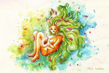Long hair and naked ladies. That's what my art's all about.Tools : Watercolors