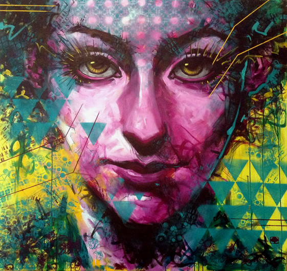 the face is visually striking but those awesome stencil work does lure your eye to it so nicely done there