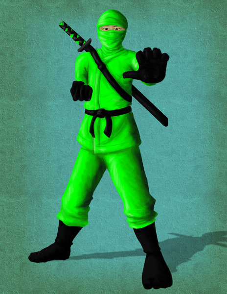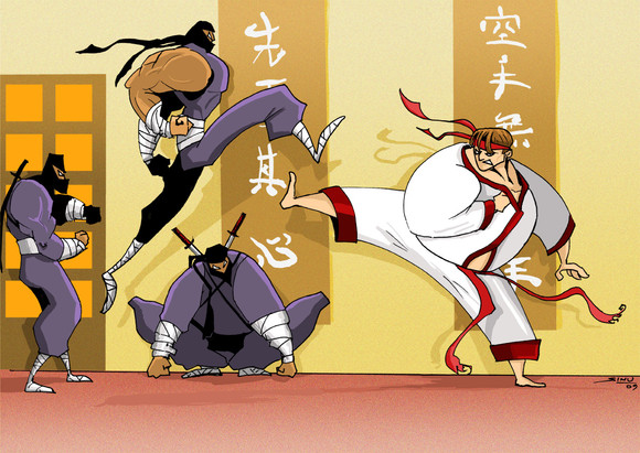 My caption for this picture is... "Oh crap!" I really like how the grenade is gonna pwn the ninjas in a matter of seconds. What a great concept! Slightly evil, but oh-so-very entertaining.
