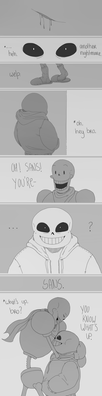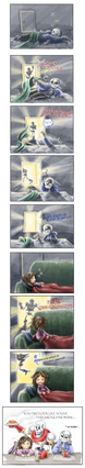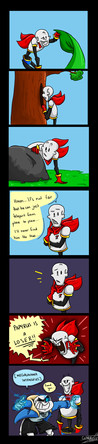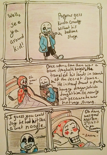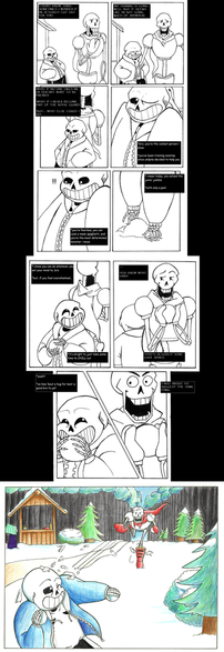 Sans and Papyrus somehow get trapped in the game's source code, where they find a familiar face.After seeing inside out I somehow had the rather insistent mental image of Papyrus dragging Sans over the floor by his leg because he couldn't be bothered to walk. I blame sleep deprivation for making me think drawing the entire scene was a great idea.