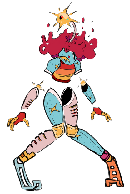 another sketch of my new oc <3her name's led and she's got a colour changing lamp for a head.
