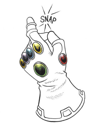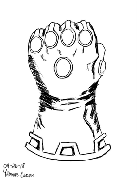 One of my Daily Drawings, done on the opening night of Avengers: Infinity War in my area. We went to see it that night, and this drawing was started before the movie, finished after I got home at 2 AM. It was still done rather quickly, and I intend to return to the idea and try it again. A few references were used for the colors, and a couple reference images for the linework and how the gauntlet looks when it's illustrated out.The Illustration without color here --> Infinity Gauntlet Sketch