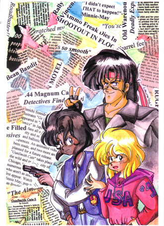 Fanart of Riding Bean, by Kenichi Sonoda. Sonoda is a big influence out of my fandom loves, and the original OAV of Riding Bean (pre-GunSmithCats) is still just as enthralling. Check it out if you haven't already (via AnimEigo/Anime projects).Sonoda re-used his original design of Rally in GunSmith Cats, with practically the same hairstyle. I found this interesting as I'd not seen this sort of self-recycling done before in anime/manga.