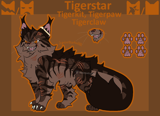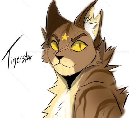 This is a redraw of my old Tigerstar design drawing. My artstyle has improved a bit since last time so I wanted to do a redraw.I also played around a LOT with the background so I hope it's not too bad. :']