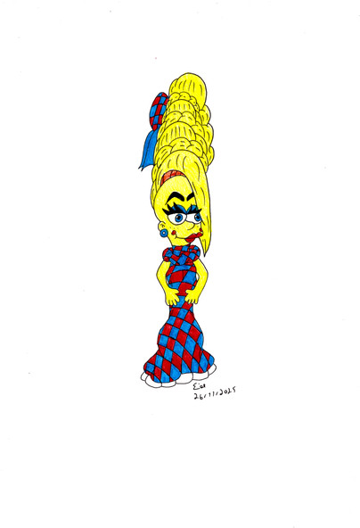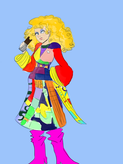 A proper gender-bend cartoon thingy of the Sixth Doctor.I want this dress soooo bad. XD It's so awful.