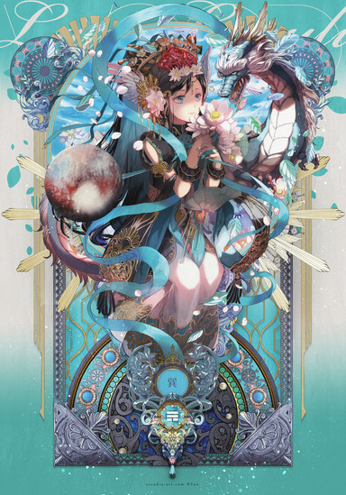 Thank you so so much, for this extremely beautiful piece of Yinfeng... the abstract background puts her in such a unique environment that I have never seen anyone else do with her. The pastel colors and the vibrant ones of her clothe contrast so nicely against each other, I am in awe of your pallete, as always.