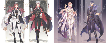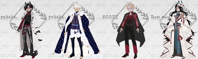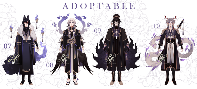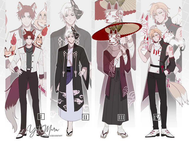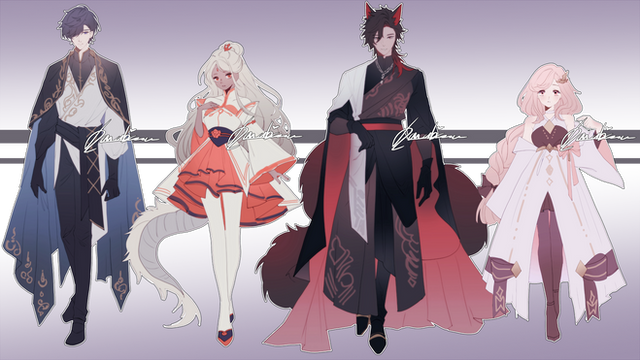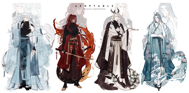 My OCs from my visual novel Dark Nights in hanfu. I tried different styles/accessoires for each.Top row: Sachiro - Junoru - Zeikun - Kurato
