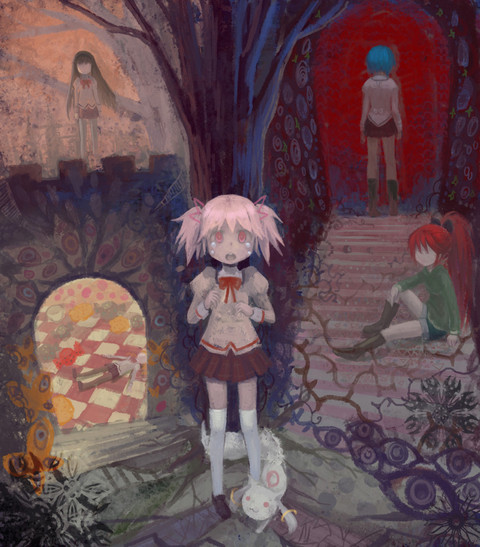 #anime #scenery #animegirl #conceptart #skeleton #madokamagica #madoka_magica