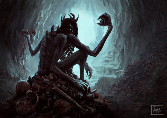 #chaos #clouds #corpse #man #mutant #night #shapeshifter #sword #tree #worms #piofoks