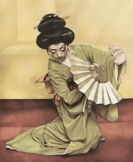 What is she hiding behind her back?