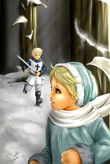 Un délire personnel XD J'avais envie de faire une illustration du tome 1 version chibi xD enfin c'est pas du tout le genre d'illustration que je voudrais pour mon roman, là je voulais que ça fasse un peu héroïque (alors qu'Anouche n'a rien d’héroïque dans l'histoire mais bon XD)Bref gros délire, j'aime bien les voir en chibi (surtout Zakhar
