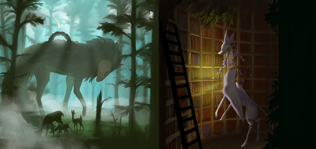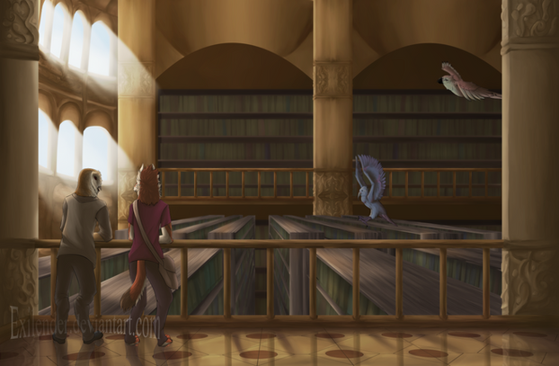 It seems as though Eva found herself exploring a library, Unbeknownst to her, a certain wanderer is watching her intently.