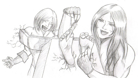 My favorite of all your OCs, suffering tickling at its worst. This poor girl needs a break one of these days. I love the expression on Sabrina here man, another big improvement in your style. And your close drawings I'm really loving too. They really add to the overall piece and show how truly torturous the moment really is. Nice work man. I hope Sabrina comes up gain soon.