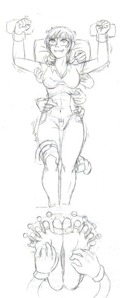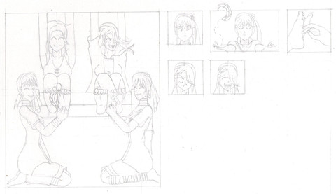 Well, haven't posted much of my OCs. I figure i can put some old drawings.This is a sketch of Sabri being tickled ruthlessly by a hellish machine. Those feathers between her toes must being driving her totally nuts, since her feet and specially the toes are her worst spot.