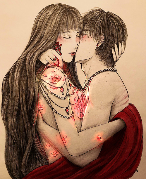 I hate the process of drawing kisses (getting the faces to align is HARD) but the end result is always a feeling of like "oh shit I did that!!" and it's nice. Raine belongs to me and Felix belongs to AshenCrystal !!