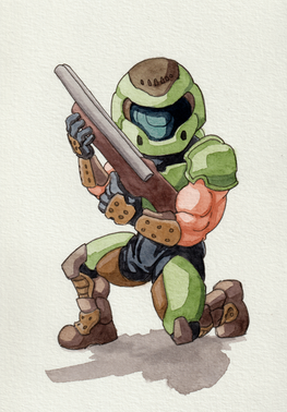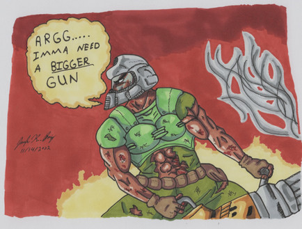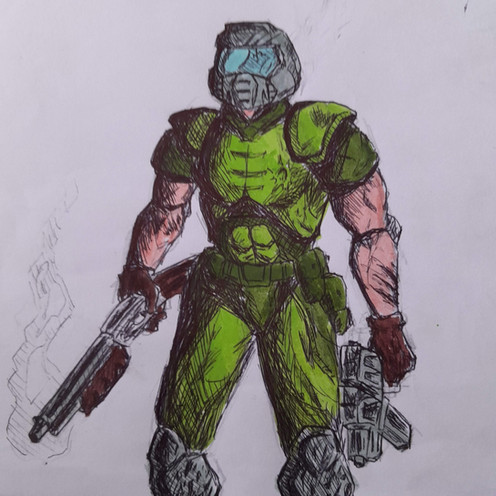 Biceps man. Nice drawing but would be cool if you drew a reflection of a soon dead demon in his visor perhaps.